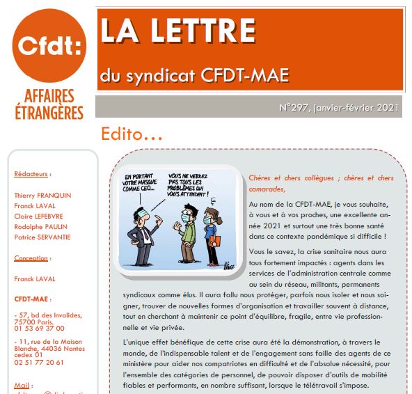 • Courriel : cfdt.mae@diplomatie.gouv.fr