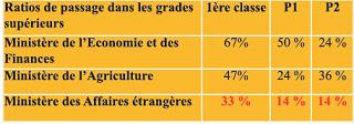 • une augmentation significative des ratios promus/promouvables et propose une «opération de rattrapage», éventuellement sur deux ans, pour aligner le MAE sur les autres ministères mieux servis en utilisant une partie des retours catégoriels résultant du non remplacement d’une partie des départs à la retraite ;