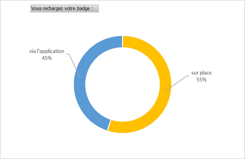 55 % des agents rechargent leur badge sur place et 45 % en ligne. L’application en ligne est jugée très satisfaisante ou satisfaisante pour 57 % des répondants qui précisent que l’application est très utile pour choisir son menu et faire remonter des remarques ponctuelles auxquelles l’équipe Elior répond rapidement.