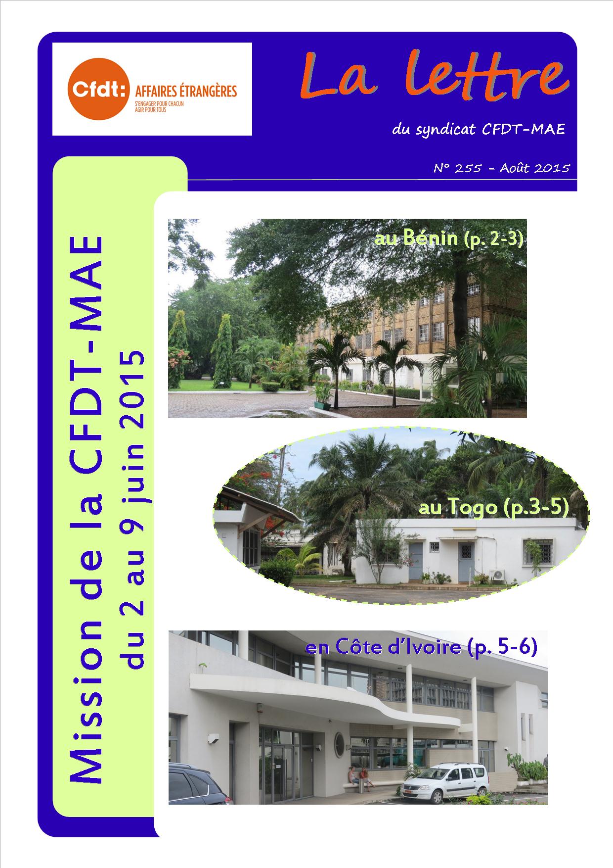 Dans ce numéro de la lettre du syndicat (LDS n°255) vous trouverez les missions Afrique de la CFDT-MAE au Bénin, au Togo et en Côte d’Ivoire.