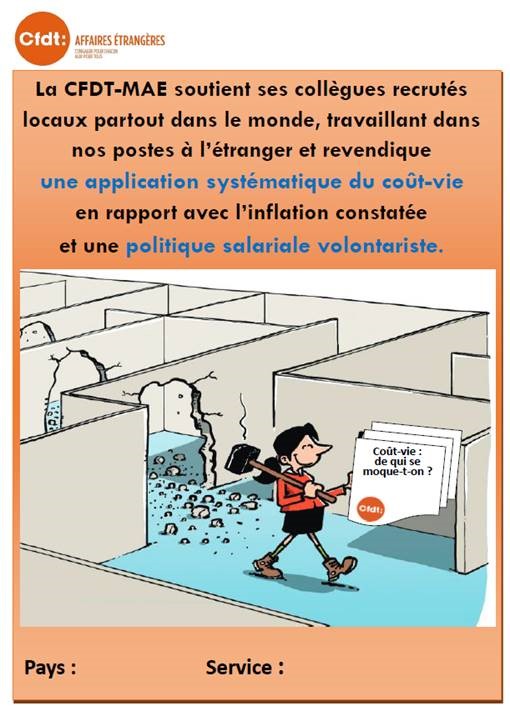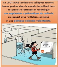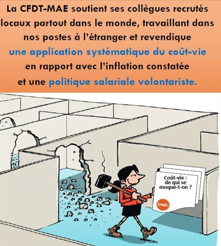 Au CSAM du 5 juillet, la CFDT-MAE a demandé à l’administration d’accorder le coût-vie constaté par le FMI à tous les postes concernés y compris les EAF.