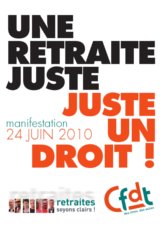 Cette réforme, loin de répondre à l’enjeu de société qu’est celui de l’avenir des retraites, est brutale et porteuse de recul social pour la quasi-totalité des salariés du privé, du public et des régimes spéciaux. Pour combattre cette réforme, les organisations syndicales CFDT, CGT, FSU, Solidaires, Unsa appellent l’ensemble des salariés, des retraités, des privés d’emploi et des jeunes à participer massivement à la journée nationale de grèves et de manifestations du 24 juin 2010.