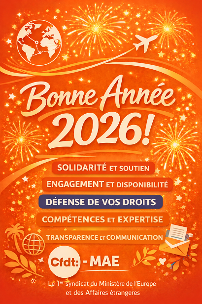 L’assemblée générale de la section CFDT-MAE de Paris, s’est réunie à la cafétéria de Convention, le 26 janvier dernier, en présence d’une trentaine d’adhérents travaillant sur les différents sites parisiens et représentatifs de toutes les catégories de personnel du Ministère.