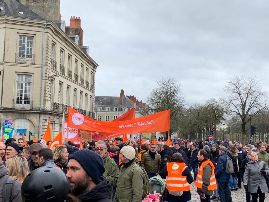 Une nouvelle journée de mobilisation est prévue ce samedi à Paris et à Nantes contre la réforme des retraites. Nous manifesterons donc une nouvelle fois à 13h00 à Paris (Rdv Place de République, à l’angle du Boulevard Voltaire, sous la bannière CFDT Interco) et à 14h00 à Nantes (Rdv Miroir d’eau – Château sous la bannière CFDT Affaires étrangères).