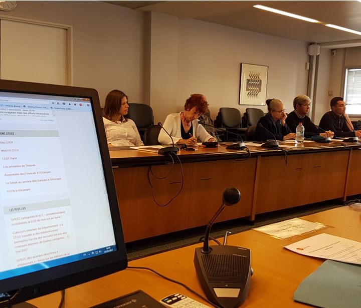 Le sujet du RIFSEEP au service central de l’état-civil a fait l’objet d’un tour de table animé. Les conclusions de l’enquête de Claire LEFEBVRE ont été rappelées : Alors que 30% des agents de catégorie C du MAEDI seraient sur un emploi recensé au groupe 1 du RIFSEEP, on constate que, selon les directions, ce taux varie très fortement. En effet, si la DGA (hors DRH et DAF) et SSD tournent en effet autour de 30%, certains services semblent avoir su se réserver la part du lion : 63% pour la DRH, 89% pour le CSRH et la DAF et 95% pour la DIL. En face, la DFAE dans son ensemble est à 9% et le service central de l’état civil, si on l’isole à 8% : une action est donc jugée indispensable en direction du DFAE afin de corriger rapidement le tir, l’exercice de « re-cartographie » étant en cours.