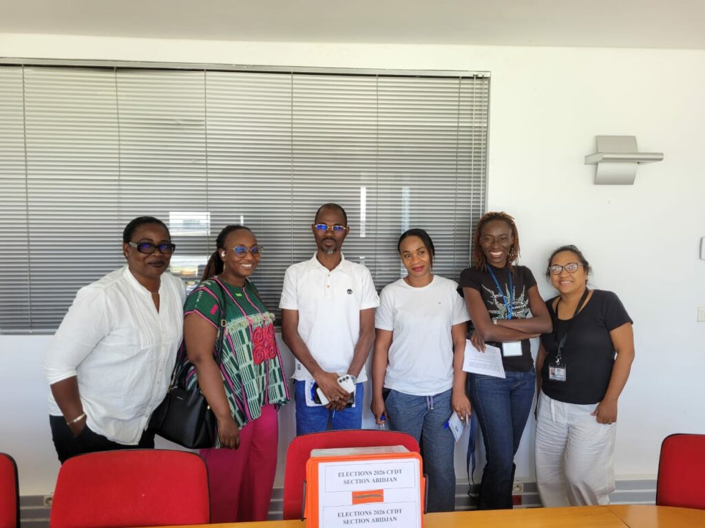 Les adhérentes et adhérents CFDT-MAE du Consulat général, de l’Ambassade et de l’Institut français d’Abidjan ont tenu, le 30 mars 2026, une assemblée générale pour constituer une section syndicale locale. Après avoir débattu en séance, ils ont approuvé à l’unanimité la création d’une section CFDT et ont également élu leur bureau :