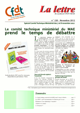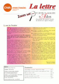 Edito. La CFDT-MAE en mission de formation syndicale à Alger. Rapport de la Cour des Comptes sur les missions consulaires. Le CTM vu par les Recrutés locaux.