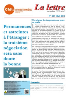 Permanence et astreinte à l’étranger : la 3ème négociation sera sans doute la bonne page 1-2. Formulaire d’évaluation 2013 : un toilettage en douceur qui a échoué. Calendrier des réunions.