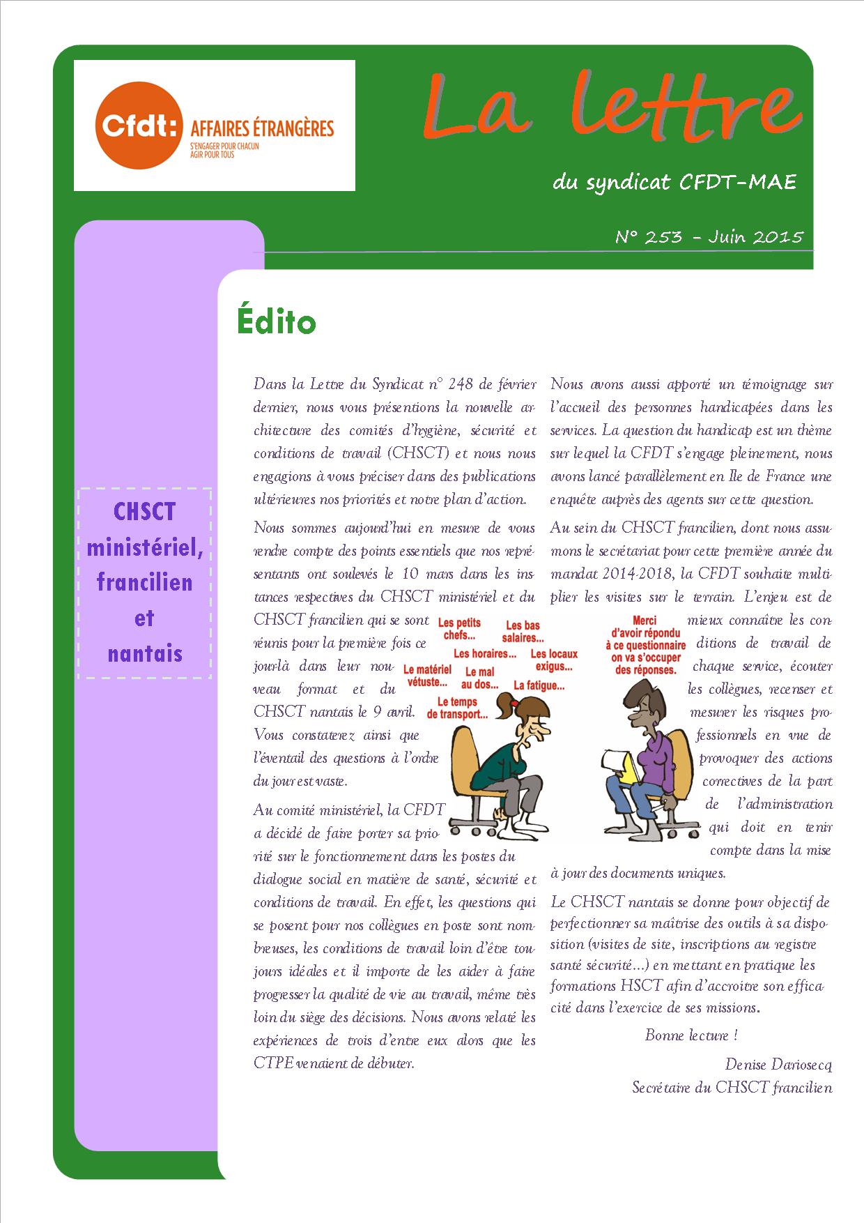 Dans cette seconde LDS du mois de juin, vous trouverez des articles sur les CHSCT ministériel, francilien et nantais.